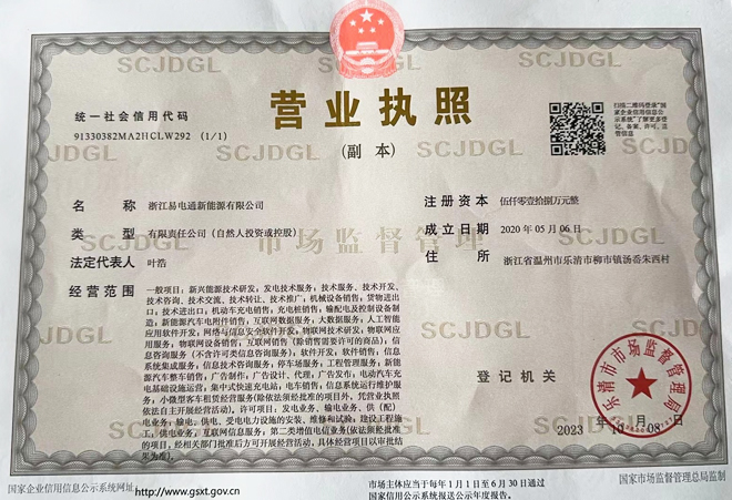 > 浙江易電通新能源有限公司成立于2020年5月,注冊(cè)資金5018萬元